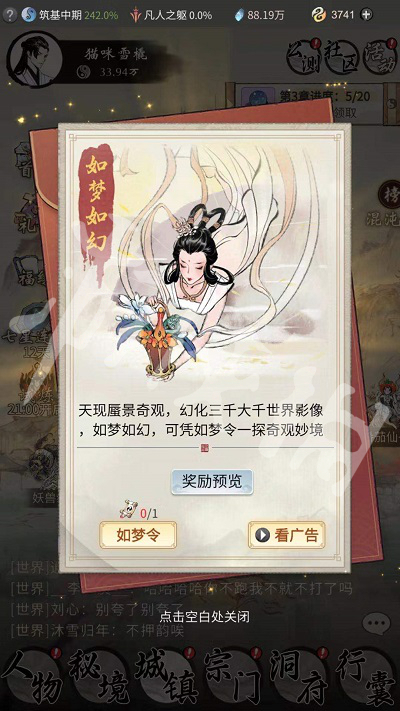 如梦如幻其实就是一念逍遥右下方出现的特殊广告,玩家可以选择利用如梦令来进行跳过获得老老实实看完拿奖励,那么具体都有哪些奖励呢?可能还有很多小伙伴不清楚这个问题,不过没有关系小编给大家准备了相关的详细内容来帮助大家更好的了解,下面让我们一起来看看吧。