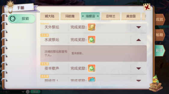 这个任务是在海螺湾地图中触发的,任务的提示是,沙滩的祭坛那里有一个人,玩家可以根据在游戏的手册中的提示来到海螺湾的沙滩区域寻找祭坛。
