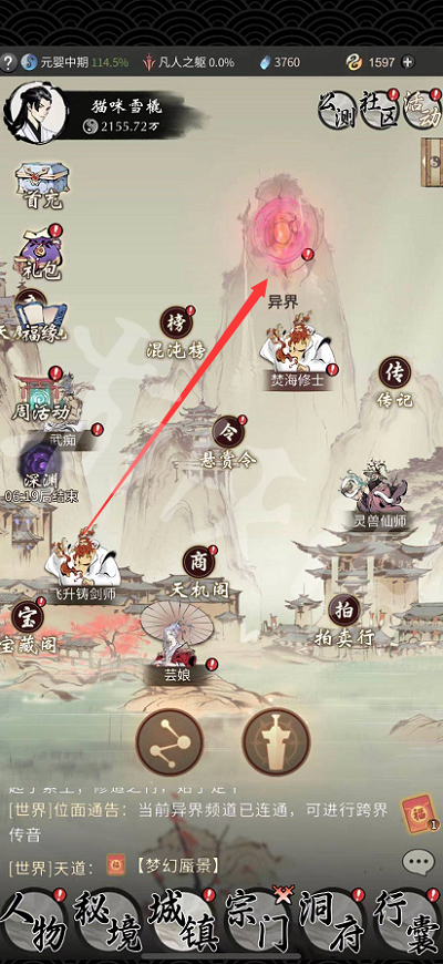 在异界活动界面可以找到跨界论道活动,点击即可参加。