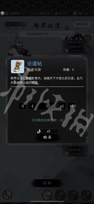 10次免费挑战之后想要继续参加活动需要用机缘购买论道帖。