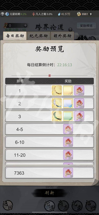 我们每天可以免费挑战10次异界道友,获胜可以提升排名。