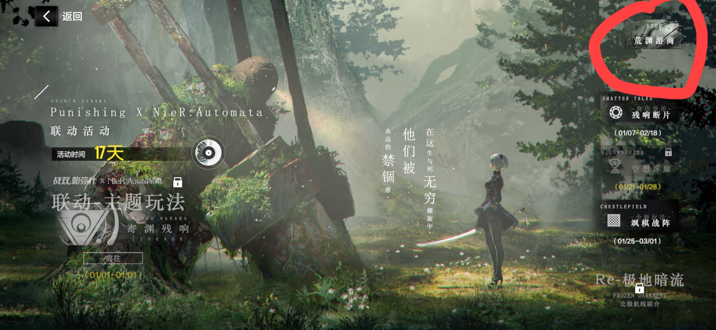 然后在里面点击右上角的荒渊游商,点击进入,就可以看见商店了。