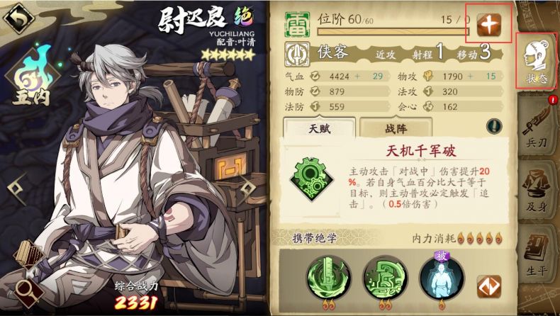 首先在营地界面点击右下角角色,进入英灵展示页面,之后点击想要培养的英灵进入该英灵的养成界面,在英灵状态页签最上方会显示英灵目前的等级和经验值情况,点击经验条右侧的+按钮即可使用历练丹为英灵进行升级。