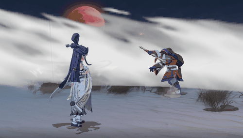 为此我们从中国古代传统文化中寻求巧思,将书法与纸帛结合构成其独特的攻击方式。同时将青帛纸砚与黑白泼墨的表现形式为整体基调带出封铃笙蕙质兰心的至雅品性。卷中红尘,不羁于现世,渐隐微光的眼眸则是对江湖血雨的审视。