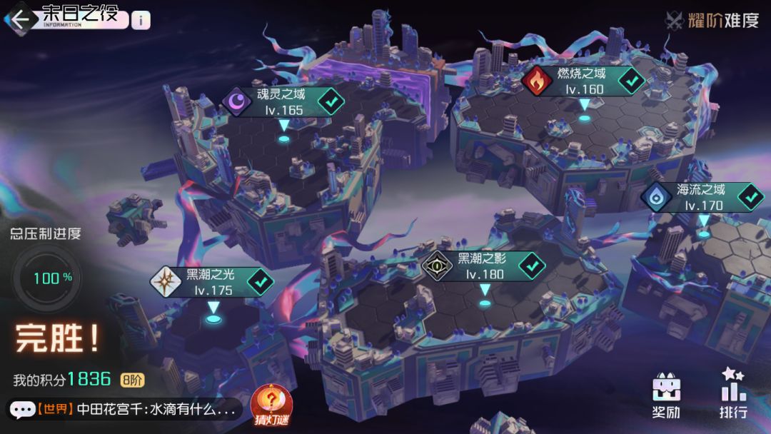 1阶奖励,总压制进度20%,特级功勋*700,随机命运*3