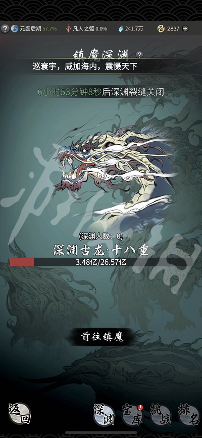 仙友可随时进出镇魔秘境,累计10分钟后结束镇魔。