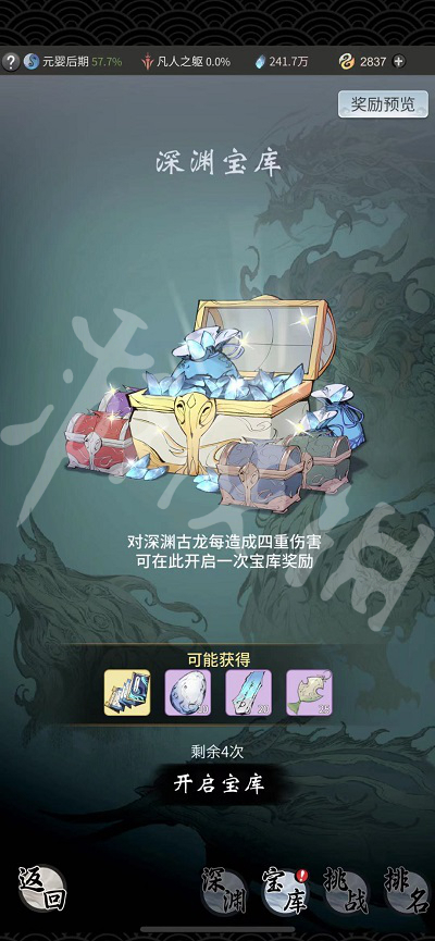 对深渊古龙每造成四重伤害,可在此开启一次宝库奖励。