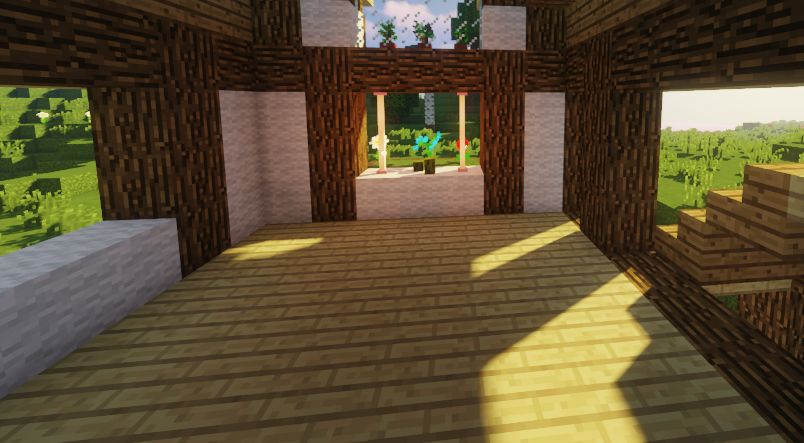 我们还可以将工具室屋顶铺平,做出一个通道可以直接从屋内通向平台。