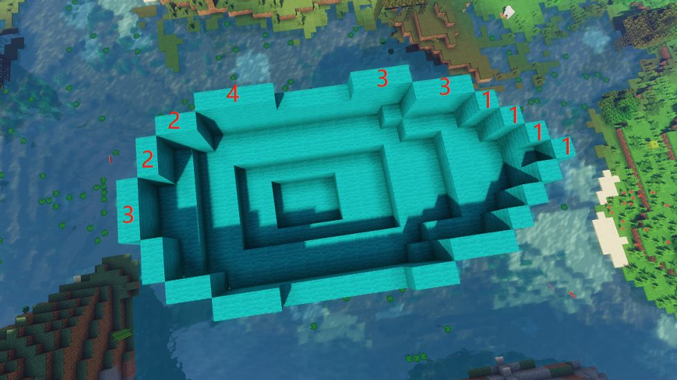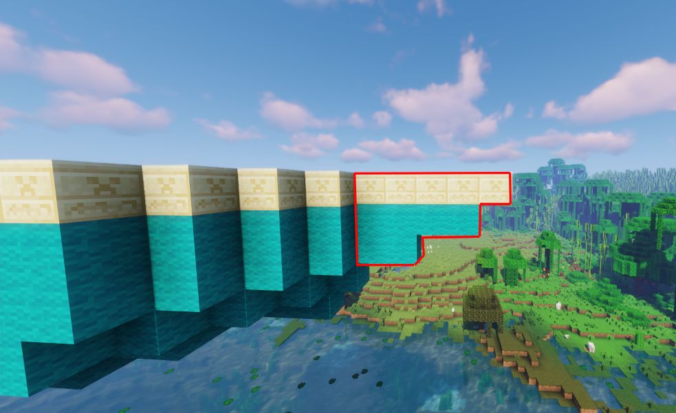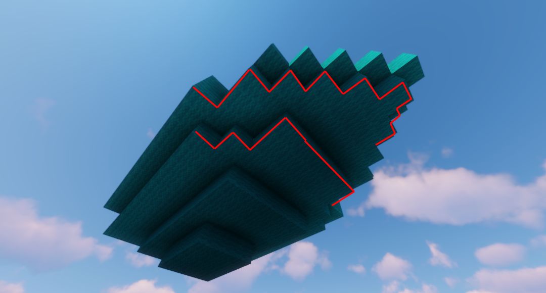 我们先来搭建船的框架,按照下图依次用青色羊毛,搭建出船的横轴、竖轴和上边缘。