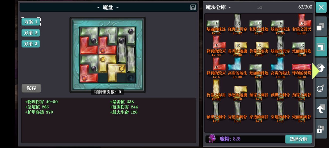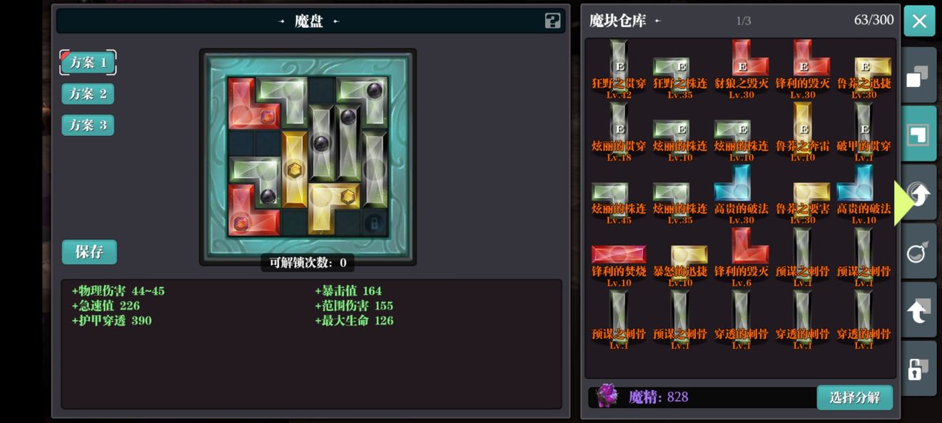 可以用绚丽的株连和狂野的株连,竖条有狂野的贯穿和绚丽的贯穿选择,破甲和范围都极高,红色的锋利魔块保证了物攻的5%加成,暴怒的要害也提供大量暴击值。