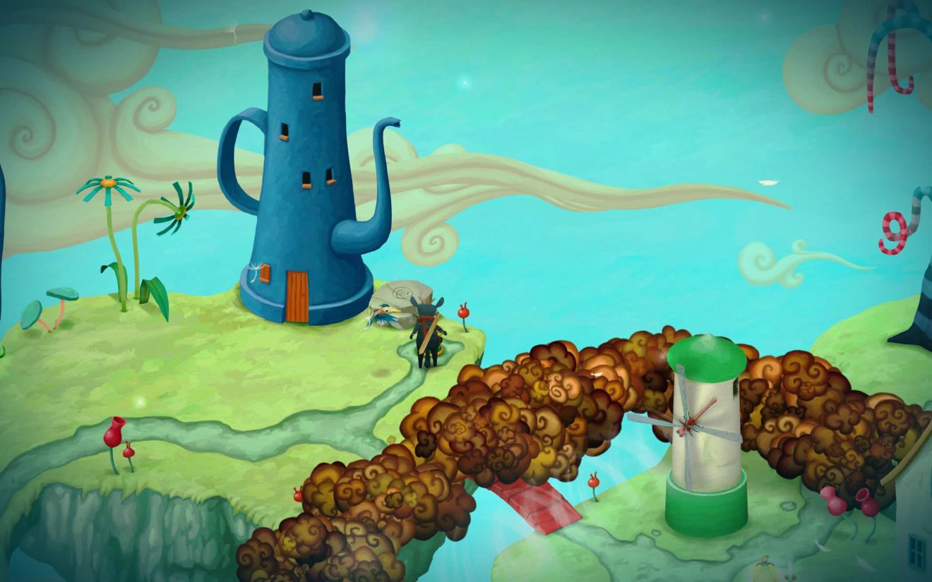 第5个记忆脑。创意花园中,锅屋左边还有幼苗洞,种植一个幼苗,可以看到可以供电的风车,放进一个绿色电池,为风车供电,吹走毒雾气收集第5个回忆。