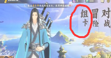 1.我们进入游戏之后,在主界面右侧可以看到组卡这个选项,点击它