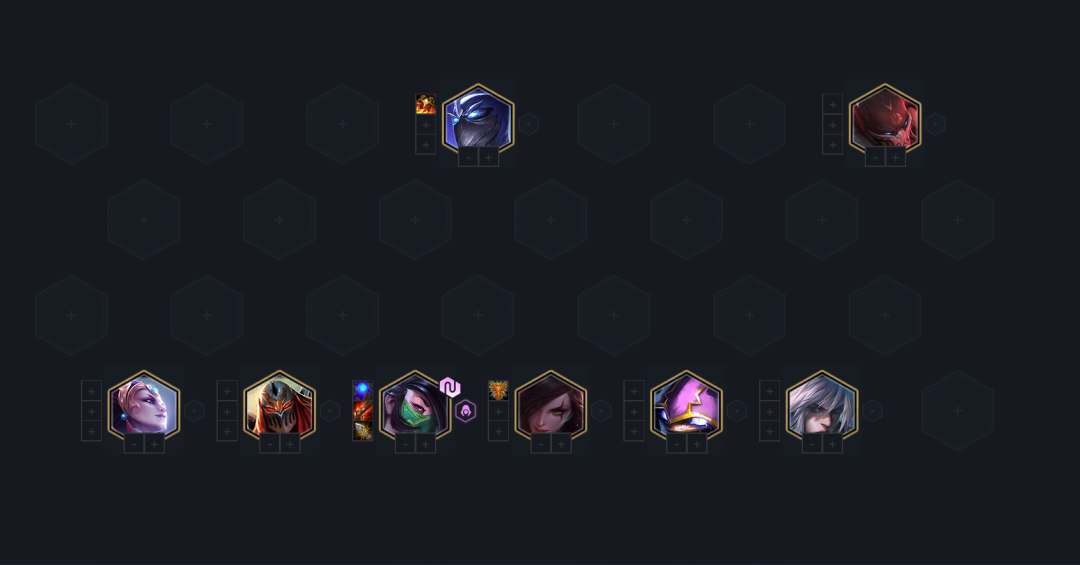4-1拉7人口,7人口慎、劫、凯南、阿卡丽、派克、男刀、卡特凑4忍者4刺客羁绊。如果前期我们这个阵容走福星连败掉血的情况下拿到妮蔻,我们还是建议大家在7人口搜出3星阿卡丽,毕竟前期我们卖血太严重,我们需要直接锁血稳定连胜。