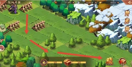 进入新地图,按照下图的路线,一路向上,攻打地图中两处敌军,继续前行,go go go!