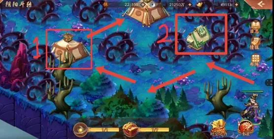 紧接着如下图,小编认为这是最简单的分支地图了,可以按照下图箭头方向找到下一张地图的跳转阵眼,顺利进入即可。