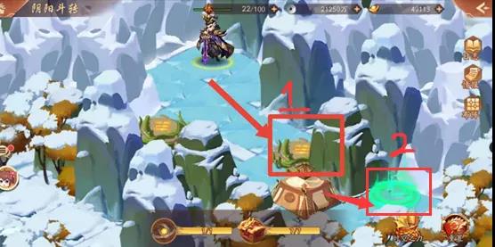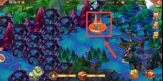 接下来按照如下图箭头的方向,攻打敌军后,按照原有的方向,继续向下前行,可以看到红色画圈处的第一个地图跳转阵眼,进入阵眼,顺利传送至下一张地图。
