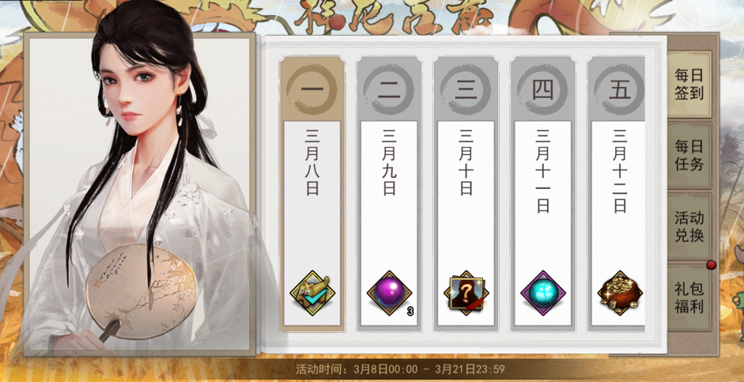 1.每日签到:每日凌晨0点刷新,大侠点击签到即可领取奖励物品。