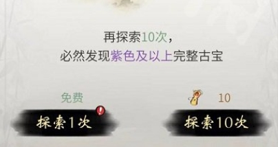 每十次抽奖,有保底紫色及以上品质的古宝。