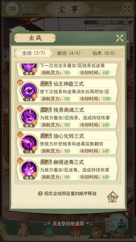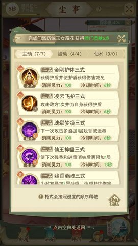 主要技能就是迷迭(五仙1000贡献换取)和魂牵、仙王(这两个是拜月教里换取的)
