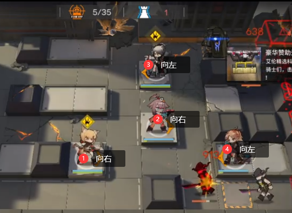 如下图所示流程下干员,红云 梅 黑 松果,下面的三人组可以打掉下路所有怪以及飞机,不需要过度关注。