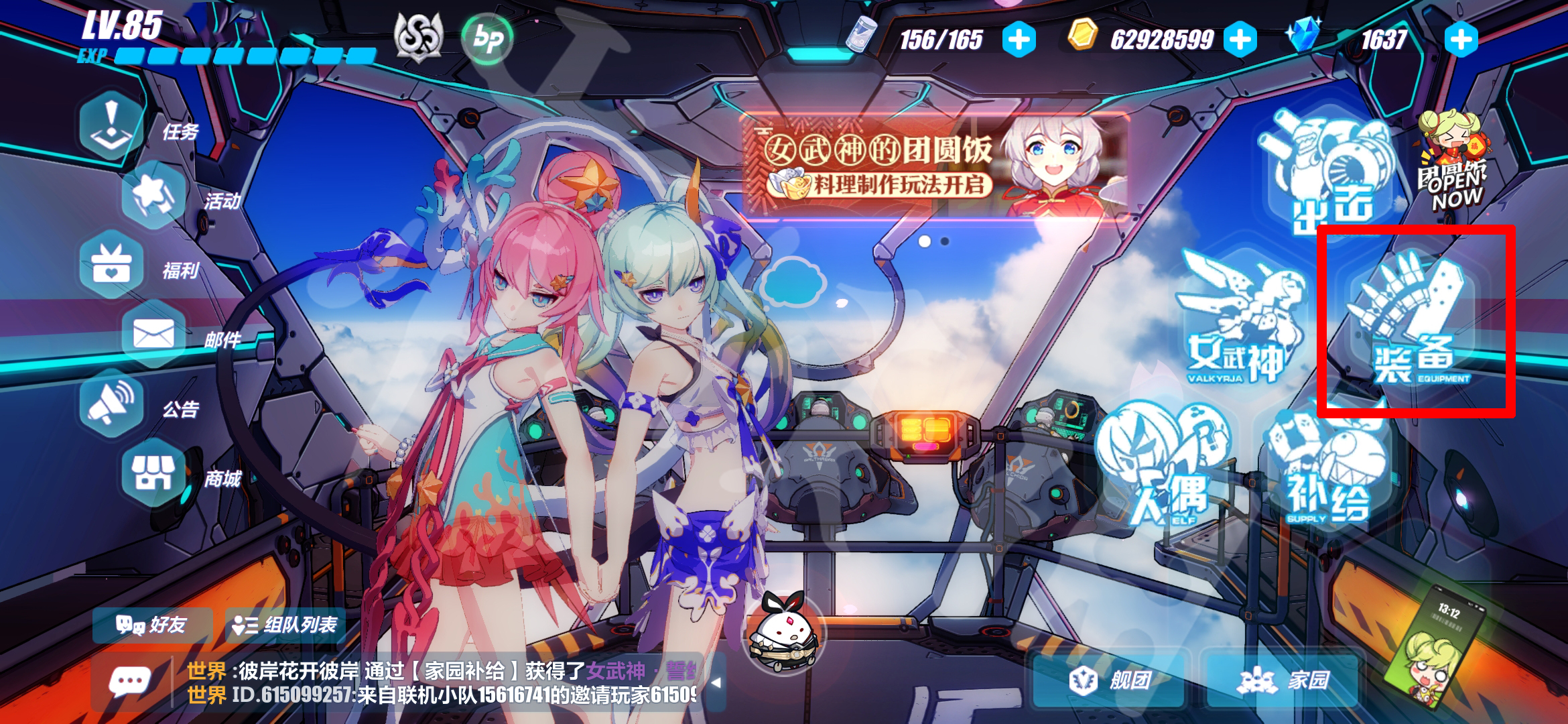 首先我们在游戏的主界面点击装备按钮,进入查看装备。