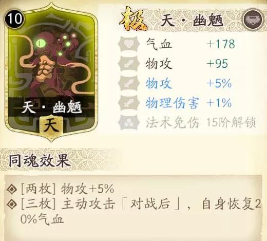满配后让殷剑平每次主动攻击后战后都能回复20%气血,增加续航能力。但在伤害上略有不足。可以视关卡而定!