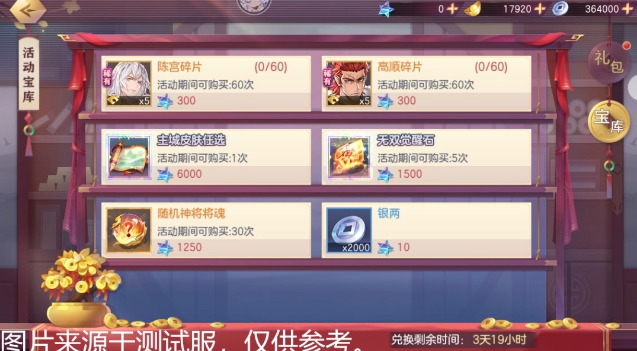 (英杰召唤、礼包、宝库会额外持续1天至3月24日4:59结束)