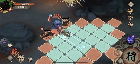 1、右边两只蝎子走上来打一下第一只怪,怪物眩晕,左边满血的蝎子再打一下,回合结束如图
