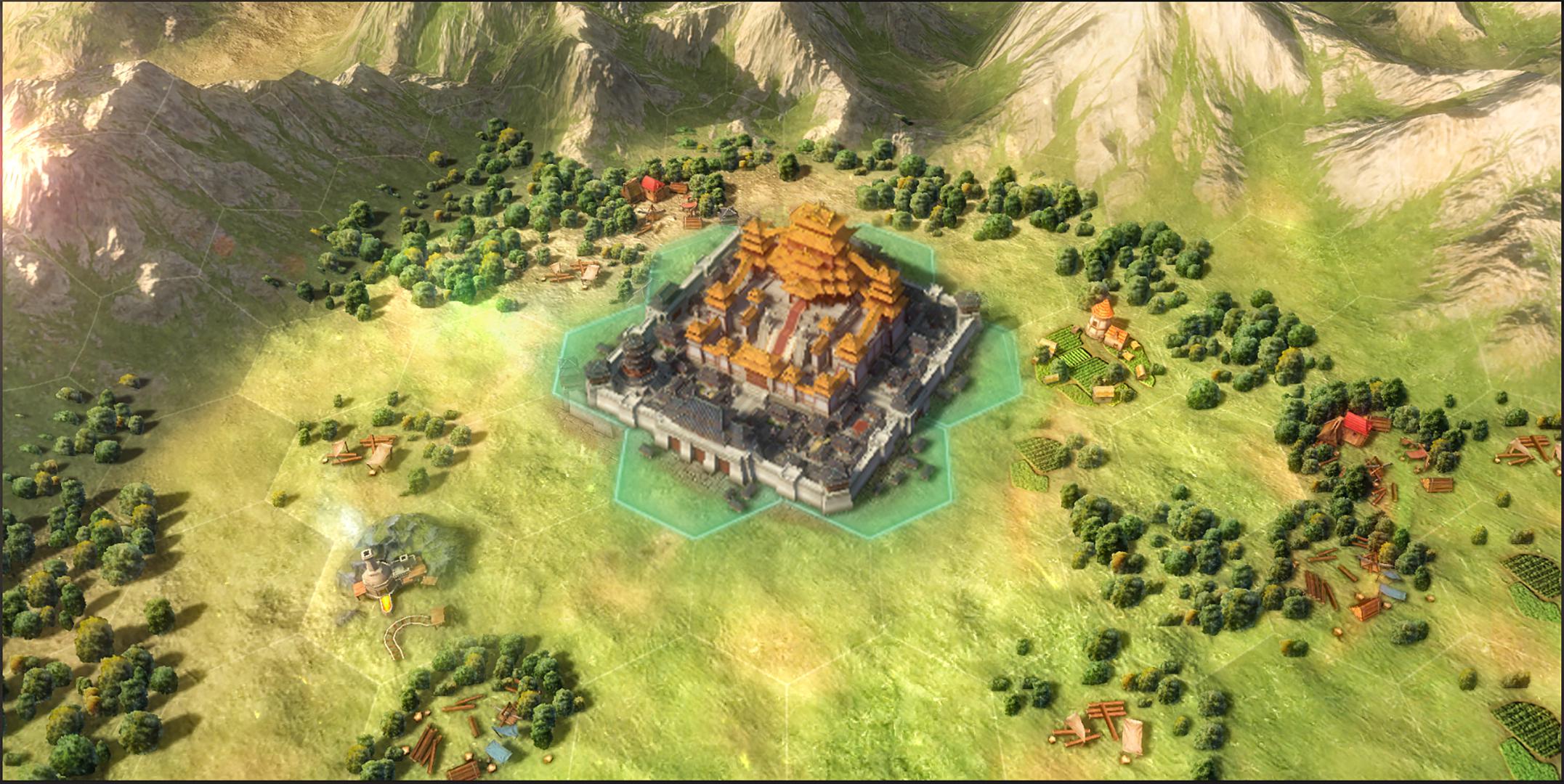 据悉,研发团队选取了经典的唐朝长安城建筑作为参考,在游戏中设计出名为长安的主城建筑。而这就是华夏文明玩家的主城建筑。