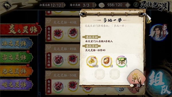 6、已通关关卡可直接扫荡获得奖励,每日可扫荡12次,「创命之间」「灵脉光渊」「剑论九州」共享扫荡次数。