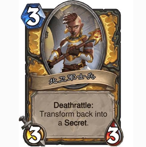 战吼:将你的奥秘变形成为3/3的士兵。当士兵死亡时,会变回奥秘。