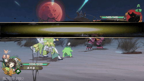 燕明蓉的本体是一只小狐狸,所以我们突出了她毛茸茸的大耳朵和尾巴(让人不禁想摸一摸!)。将小雏菊与花丛两种元素结合展现,而整体的元素则是延续了之前立绘中所体现的纹样,让其具备更强的视觉冲击力,同时也能够贴合燕明蓉俏皮的性格特点~
