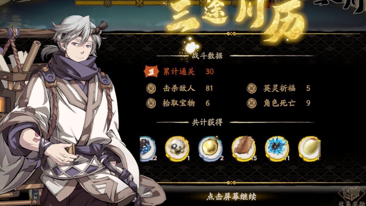 完成所有三途川关卡挑战后可以在结算面板看到所有获得的「资源奖励」和「宝物奖励」。