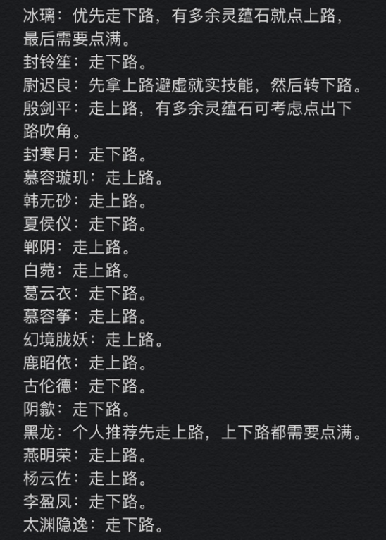 主力迟早要点满,你觉得哪条路的技能更值得点就先点哪条路。需要谨慎的是sr的五内选择,因为前期蕴点花在sr上太亏。
