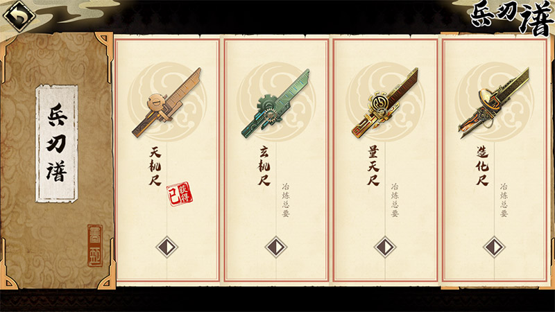 然后在兵刃详情页面点击右上角的【兵刃谱】按钮可以进入系统界面。