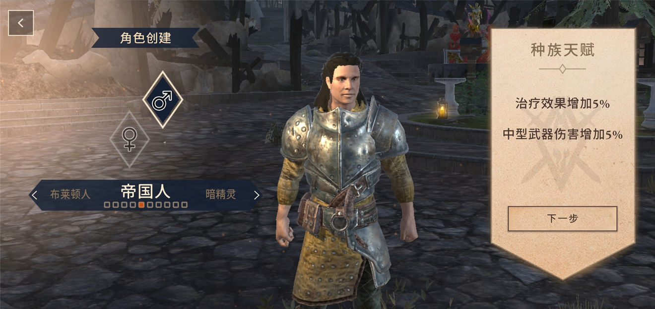 帝国人(Imperial)是诺德人的近亲,他们的天赋有治疗效果增加5%,中型武器伤害增加5%。
