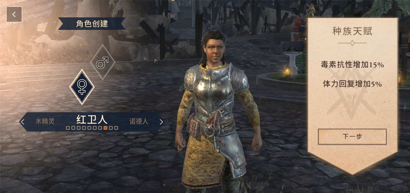 如果说帝国人是策略家,那么红卫人(Redguard)就是彻底的战士。他们的天赋是毒素抗性增加15%,体力回复增加5%。