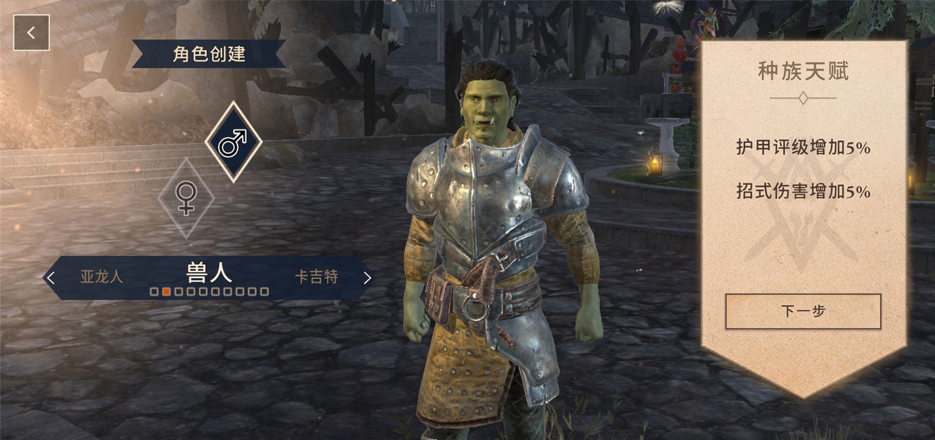 兽人(Orsimer)也属于精灵分支。他们的天赋有护甲评级增加5%,招式伤害增加5%。