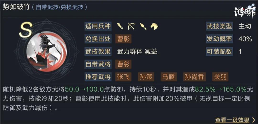 小建议:因为破虏的额外目标是随机选取,一般配置给主要承伤武将使用。