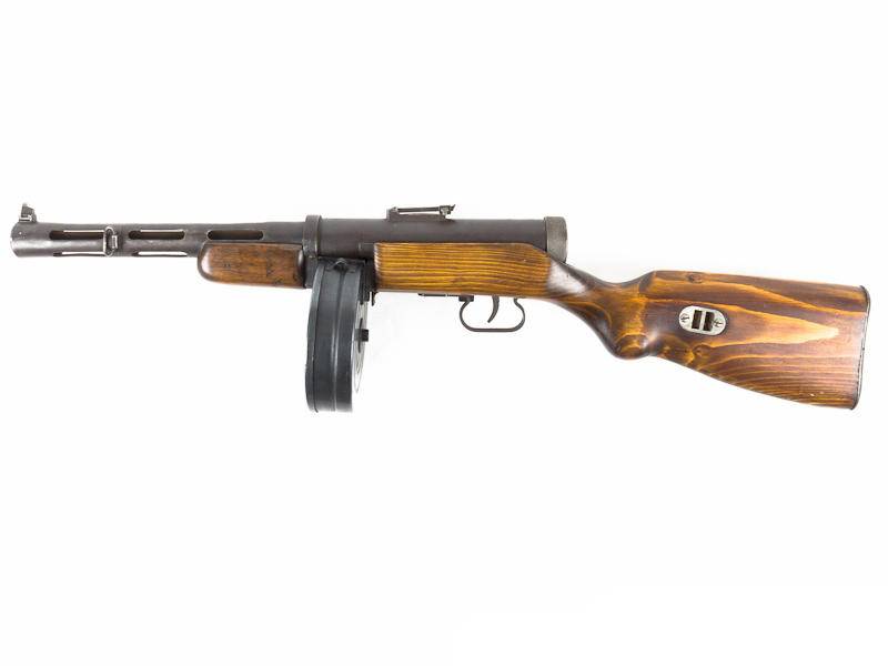 枪名:PPD-40(英语:Pistolet-Pulemyot Degtyaryova,俄语:Пистолет-пулемёт Дегтярёва,意为:捷格加廖夫手提式机枪)