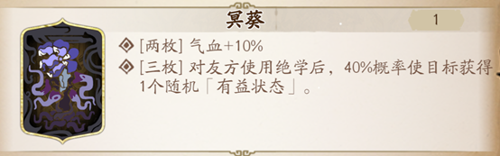 [冥葵]携带多个群体回血技能时携带,可以提供大量BUFF,由于白菀本身治疗能力突出,跟冥葵相性很好。