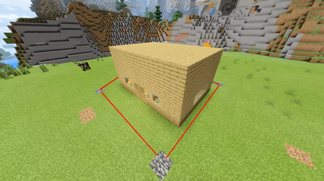 转角处小官微摆放了难以破坏的基岩作为标记(冒险家们也可以选用自己喜欢的方块)
