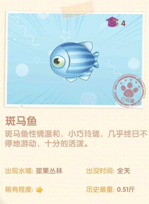 斑马鱼作为在摩尔庄园手游中生活在美丽的浆果丛林的可爱生物其中一位,相信很多小伙伴都想要跟斑马鱼做朋友吧!那么就让小编告诉你关于它的详细情报吧!