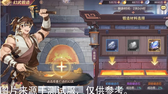 1.本次活动的【初级锻造石】【中级锻造石】【顶级锻造石】道具在活动结束后将不会过期,可在后续幻武遗迹活动中使用,请小将军们放心!
