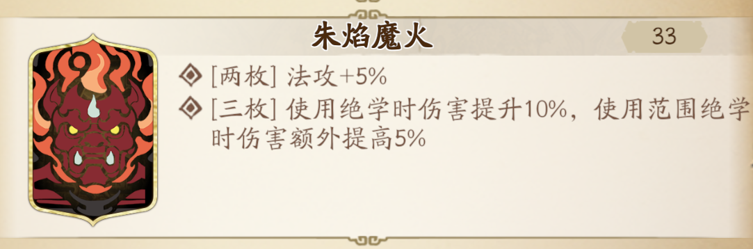 [朱焰魔火]常驻的绝学增伤,璇玑AOE技能较多CD也短,收益不错。