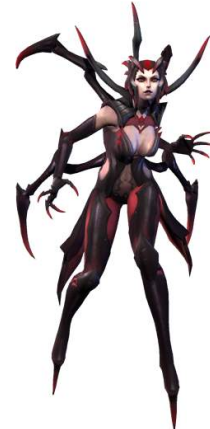 双眼之下。还有四只生长出来地小眼睛。使用时双腿消失,腹部往下变为一个巨大地圆形球状体。从这球体处生长出八条粗壮的长腿,带动着她的身体行走如飞,上面生长着大蓬的绿毛,还带有令人作呕的粘液。
