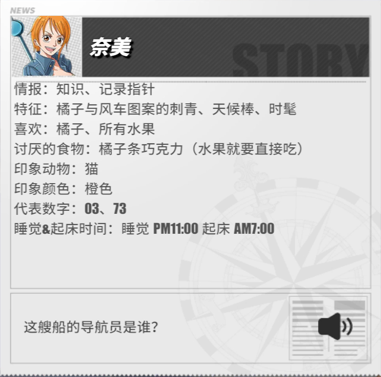奈美作为一个导航员,在航海王热血航线的游戏中也是S级角色的存在,那么她的技能属性怎么样呢?下面,游戏爱好者小编就为大家准备了关于这方面的详细攻略,一起来看看吧!