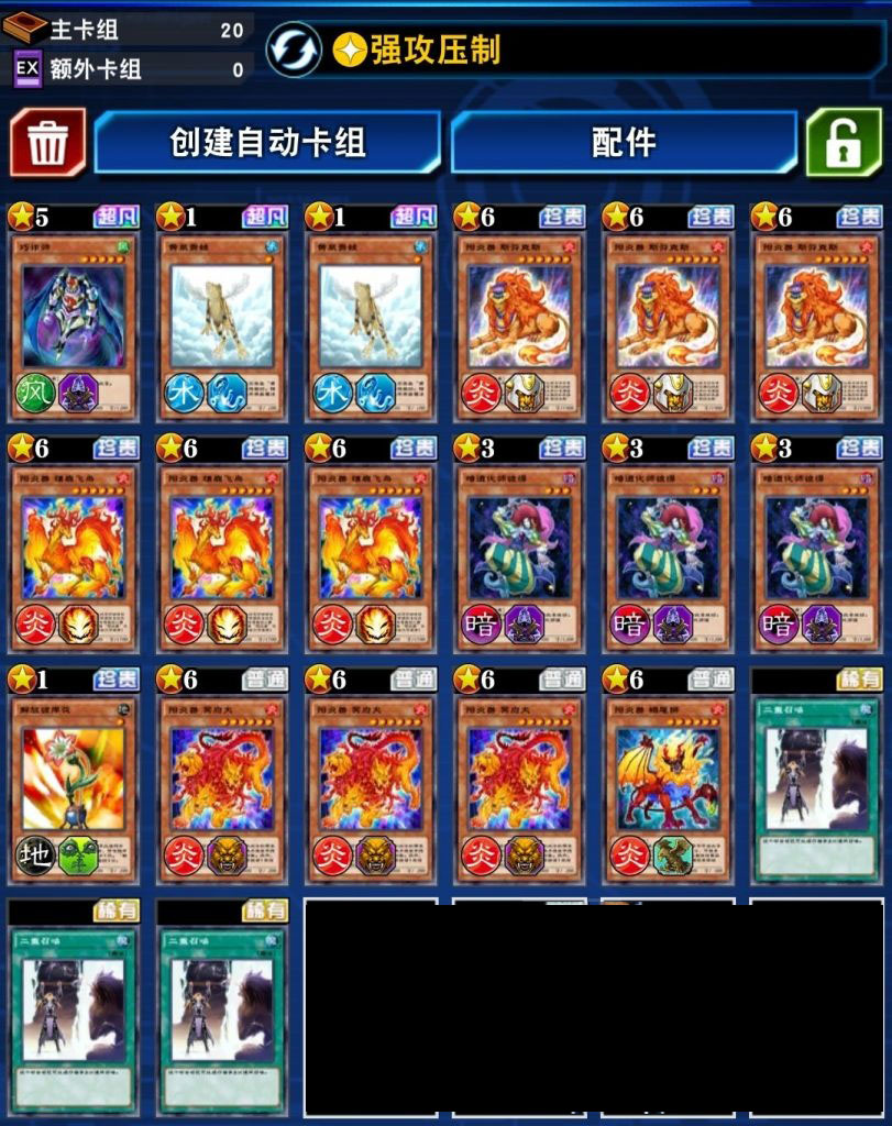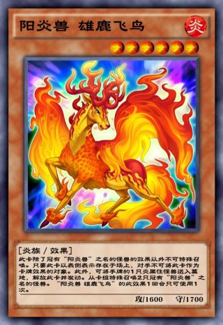 鹿可以扔炎属性手牌从卡组中拉2个阳炎兽,一般拉人面狮与狗;