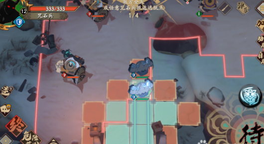 第二回合走位如图,避开地图右侧那个雷属性剑客。