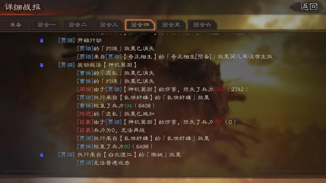 通过以上队伍兵书和技能调整后的魏法盾,在面对蜀弓时由于整个队伍只有两个主动技能,能够最大限度抑制诸葛亮一技能的发挥,同时贾诩所带的当峰和兵无常势既保证了自身的硬度又能够对姜维和诸葛亮的1技能有很好的的限制作用。即使是面对一般的带火队伍依靠自身的多种驱散手段和高回复量也完全不虚。